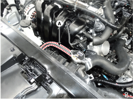Отсоедините шланг электромагнитного клапана регулируемого впуска (VIS) (А).