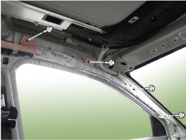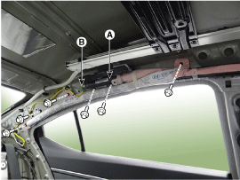 Снимите шторку безопасности (А) после отсоединения разъема жгута проводов шторки безопасности (В) и ослабления крепежных болтов.