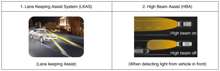 LKAS (система помощи при удержании полосы движения): система предназначена для помочь распознать полосу движения впереди и подать предупреждение о выходе из полосы движения когда транспортное средство начинает съезжать с полосы движения, используя изображение с камеры и информацию о сигнале транспортного средства.