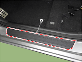 С помощью отвертки или съемника снимите облицовку порога задней двери (А).