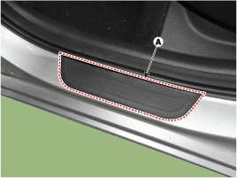 С помощью отвертки или съемника снимите облицовку порога передней двери (А).