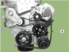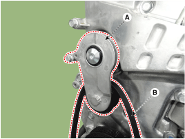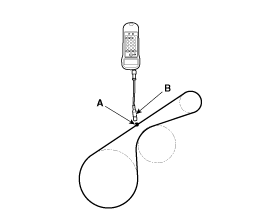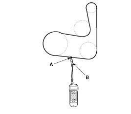 Снимите натяжитель приводного ремня (А), затем снимите приводной ремень (В).