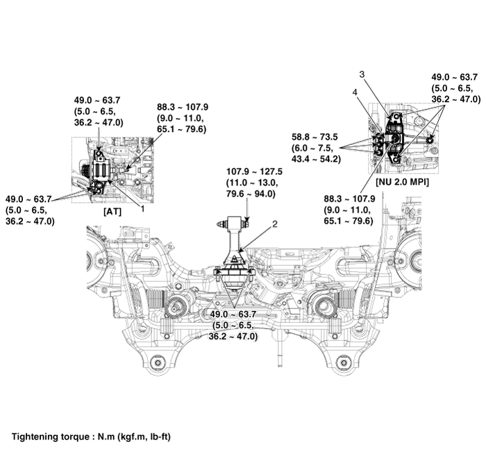 Hyundai Elantra: Двигатель и трансмиссия в сборе / Компоненты крепления двигателя и расположение компонентов