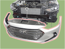 Снимите кожух переднего бампера (А).