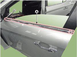 Ослабив крепежные винты, снимите ремень передней двери за пределами уплотнителя (А).