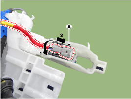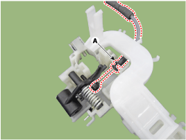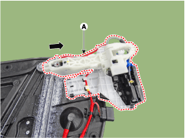 Снимите узел защелки передней двери (А), потянув ее в направлении, указанном стрелкой.