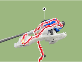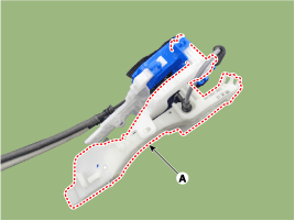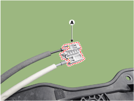 Снимите жгут проводов разъема внешней ручки передней двери (А).