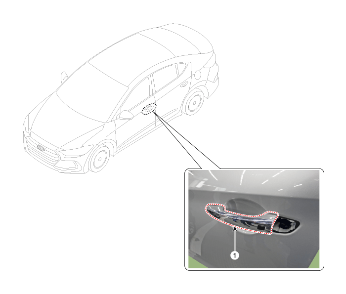 Hyundai Elantra: Передняя дверь / Наружная ручка передней двери Компоненты и расположение компонентов