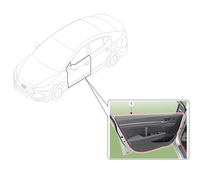 Hyundai Elantra AD (2016-2020) Руководство по ремонту / Кузов (внутри и снаружи) / Передняя дверь / Компоненты обшивки передней двери и их расположение