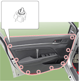 С помощью отвертки или съемника снимите внутреннюю крышку квадранта передней двери (А).