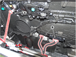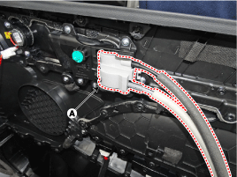 Отсоедините разъем лампы передней двери (А) и разъем переключателя электрического стеклоподъемника (В).
