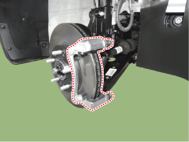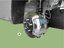 Снимите переднее колесо и шину (А) с передней ступицы.