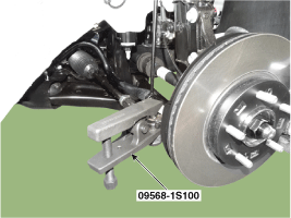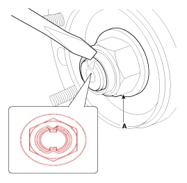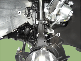 Ослабьте гайку нижнего рычага (A) и снимите шаровой шарнир нижнего рычага с помощью SST (09568-1S100).