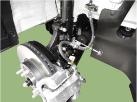 Ослабьте болт крепления тормозного шланга и снимите кронштейн тормозного шланга.