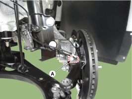 Ослабьте болт и снимите датчик скорости вращения колеса (А).