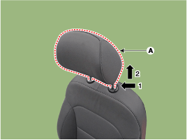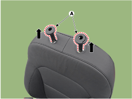 Нажмите на стопорный штифт, снимите подголовник переднего сиденья (А).