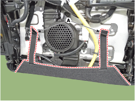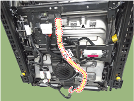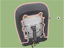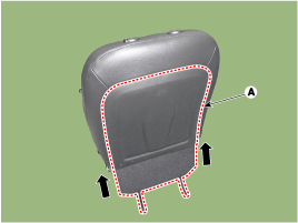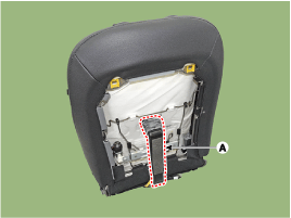 Снимите защиту (А) с каркаса спинки переднего сиденья.
