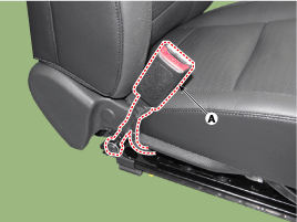Отсоедините проводку разъема замка переднего ремня безопасности (А).