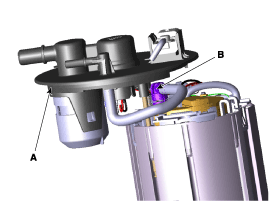 Отсоедините разъем проводки электронасоса (А) и разъем датчика уровня топлива (В).