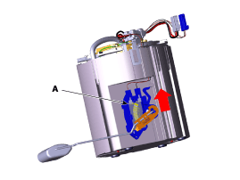Снимите датчик уровня топлива (А) в направлении, указанном стрелкой.