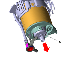 Снимите двигатель топливного насоса (А) в направлении, указанном стрелкой.