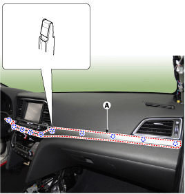 Ослабьте крепежные винты и снимите молдинг подушки безопасности [RH] (A).