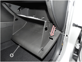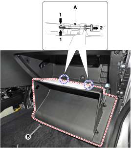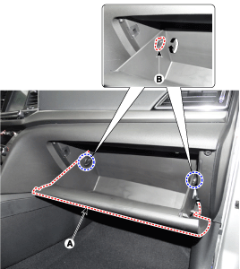 Отсоедините защелки (А) и снимите перчаточный ящик (В).