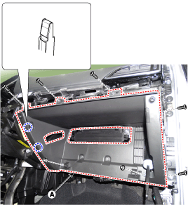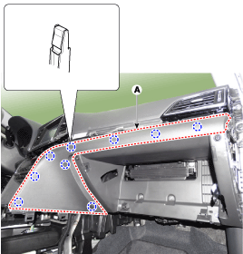 Ослабьте крепежные винты и снимите боковую декоративную накладку [RH] в сборе (A).