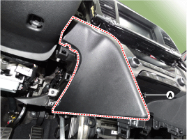 Ослабив крепежные винты, снимите блок управления кондиционером и отопителем (А).