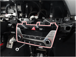 Ослабив крепежные винты, снимите блок управления кондиционером и отопителем (А).