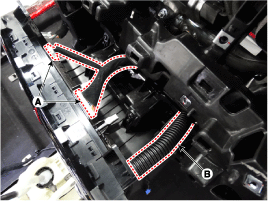 Отсоедините разъемы контроллера кондиционера и отопителя (А) и шланг (В).