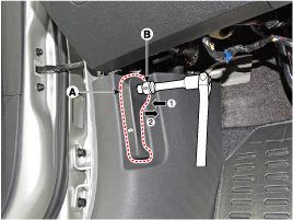 Используя торцевую головку (В), снимите ручку открывания капота (А).