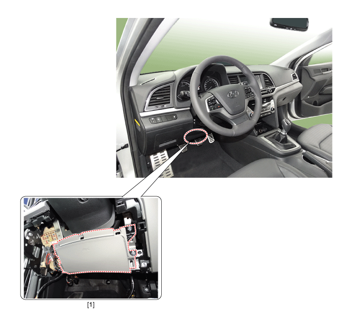 Hyundai Elantra AD (2016-2020) Руководство по ремонту / Сдержанность / Модуль подушки безопасности / Компоненты и расположение компонентов модуля подушки безопасности для коленей (KAB)