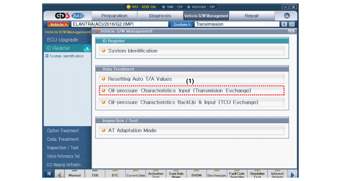 После замены автоматической коробки передач в сборе введите данные гидравлической калибровки TCM.