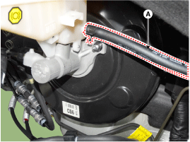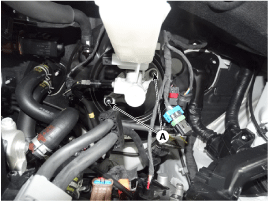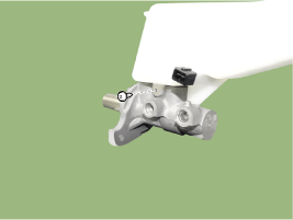 Отсоедините тормозную трубку (А) от главного цилиндра, ослабив накидную гайку трубки.