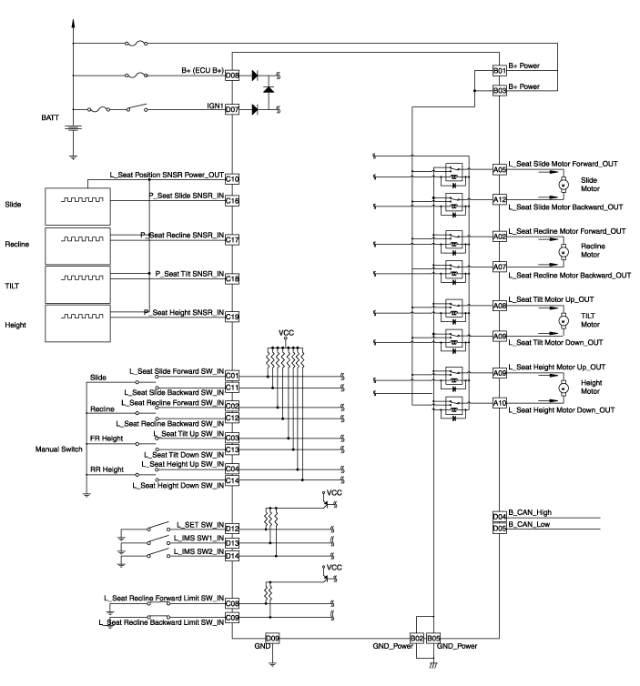 Сиденье с электроприводом и памятью Компоненты и расположение компонентов