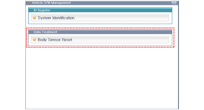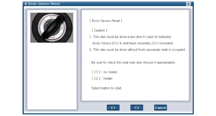 Включить зажигание и выключить двигатель, выбрать систему подушек безопасности и режим «Сброс датчиков кузова».