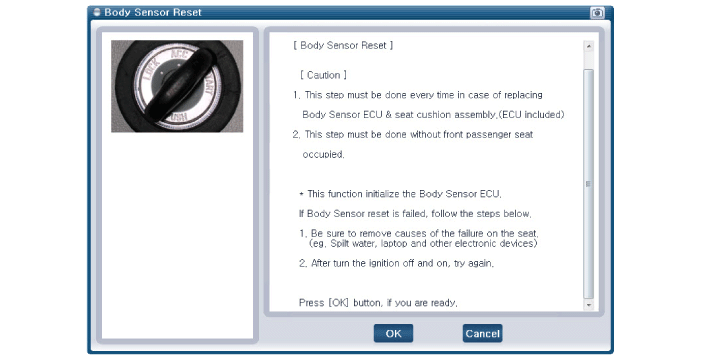 Вы должны выполнить процедуру сброса OCS после обслуживания или замена почти всей части пассажирского сиденья. (Не включены полные сиденье в сборе)