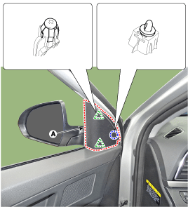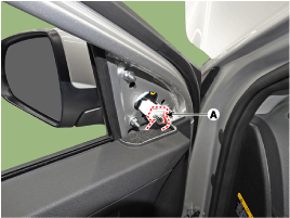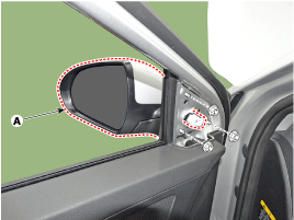 Отсоедините разъем наружного зеркала заднего вида (А).