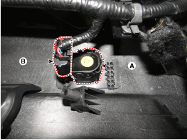 Отсоедините разъем (В) от датчика помощи при парковке (А).