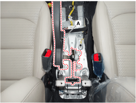 Отсоедините разъем (А) выключателя стояночного тормоза.