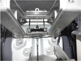Снимите узел рычага стояночного тормоза (А) после ослабления болтов.