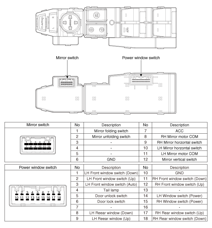 Принципиальные схемы переключателя зеркала заднего вида с электроприводом