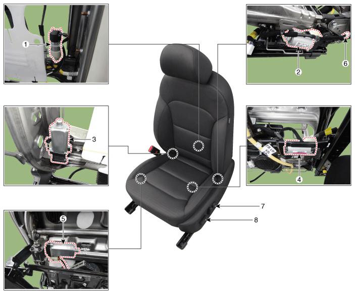 Hyundai Elantra: расположение компонентов и компонентов электродвигателя сиденья / сиденья с электроприводом