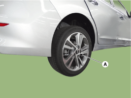 Снимите заднее колесо и шину (А) с передней ступицы.