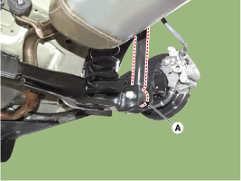 Ослабьте болт и гайку и снимите задний амортизатор (А) с оси с торсионной балкой.
