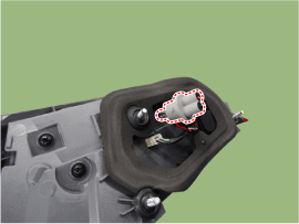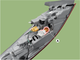 Отсоедините внутренний разъем заднего комбинированного фонаря (А) после снятия крышки заднего комбинированного фонаря.