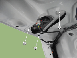 Если необходимо заменить лампочку, извлеките лампочку после снятия крышки багажника.