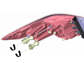 Установите задний комбинированный фонарь в сборе после сборки ламп и подсоединения разъема фонаря.