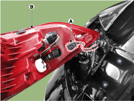 Снимите внешний задний комбинированный фонарь в сборе (В), отсоединив разъем (А).